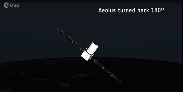 Aeolus viene ripetutamente ruotato di 180° per cambiare dall'orientamento (o "atteggiamento") di routine, in cui l'antenna in "banda X" del satellite punta verso la Terra e il GPS può funzionare per tracciare la missione - cruciale per mantenere la consapevolezza della propria posizione – e l’atteggiamento “retrogrado”.