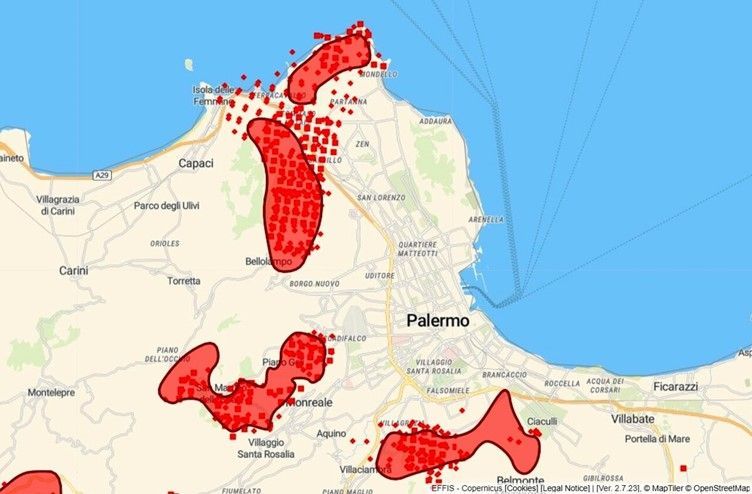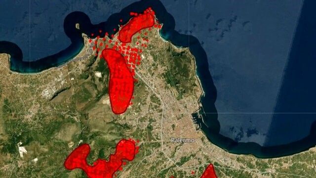 Le immagini che vi mostro sono state ricostruite grazie al satellite Sentinel-2 e ci fanno vedere la mappa degli incendi di Palermo nei giorni passati.