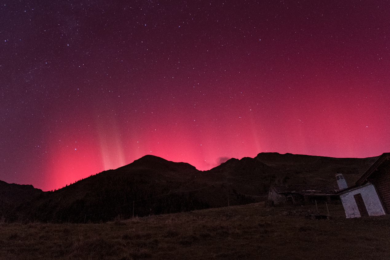 Gli Stable Auroral Red Arch possono apparire come archi ben definiti nel cielo, a volte accompagnati da altre colorazioni, come il verde o il blu, che si verificano a quote più basse. Nel caso degli eventi di maggio e ottobre 2024, la parte verde è risultata visibile bassa all’orizzonte, specialmente dalle alture. In queste immagini non risultano visibili a causa del monte che ho avuto di fronte per tutta la notte.