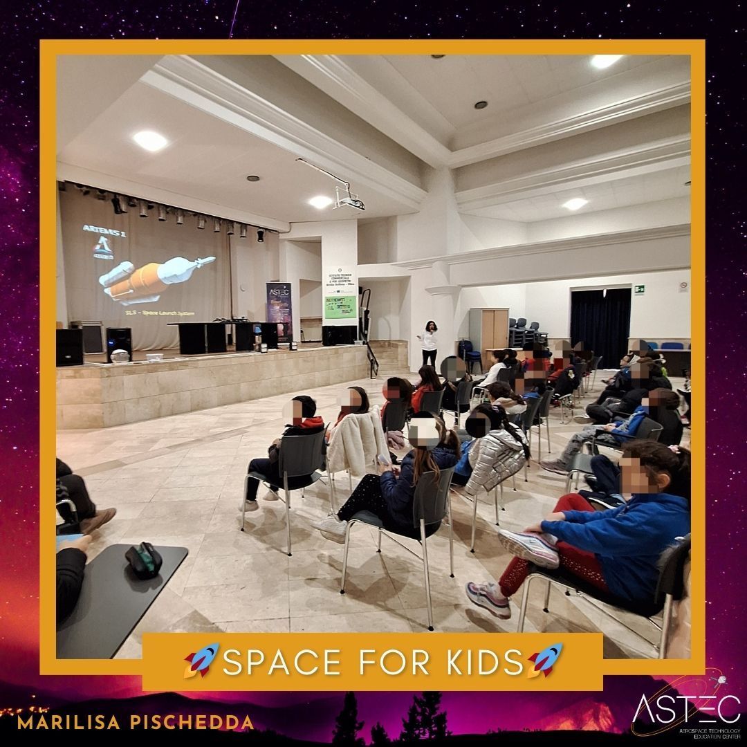 Nel GENNAIO 2024 abbiamo portato avanti l'evento itinerante SPACE FOR KIDS ideato per i bambini della scuola primaria, perché si avvicinino all'aerospazio sempre di più, attraverso giochi interattivi e coinvolgimento diretto.